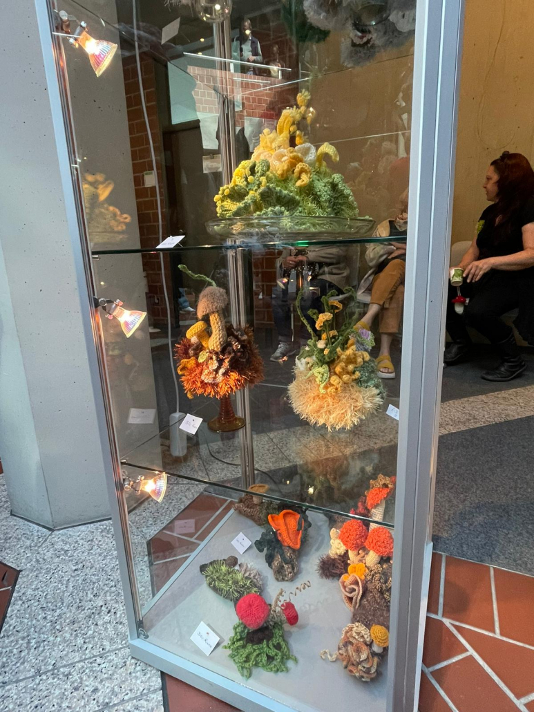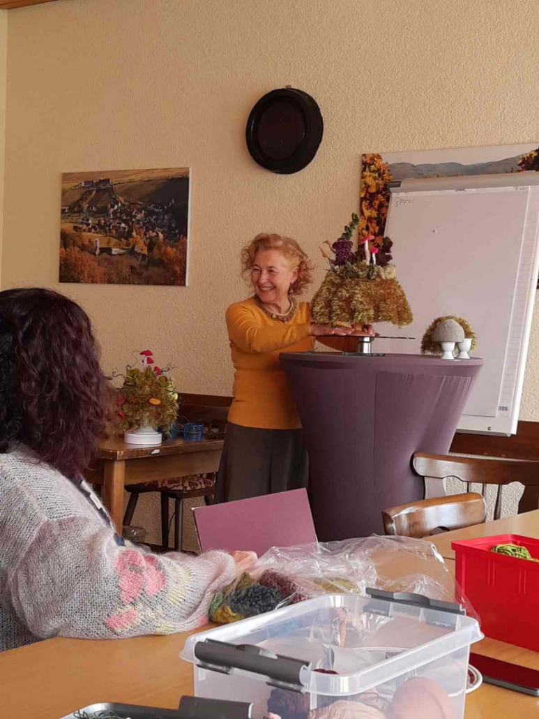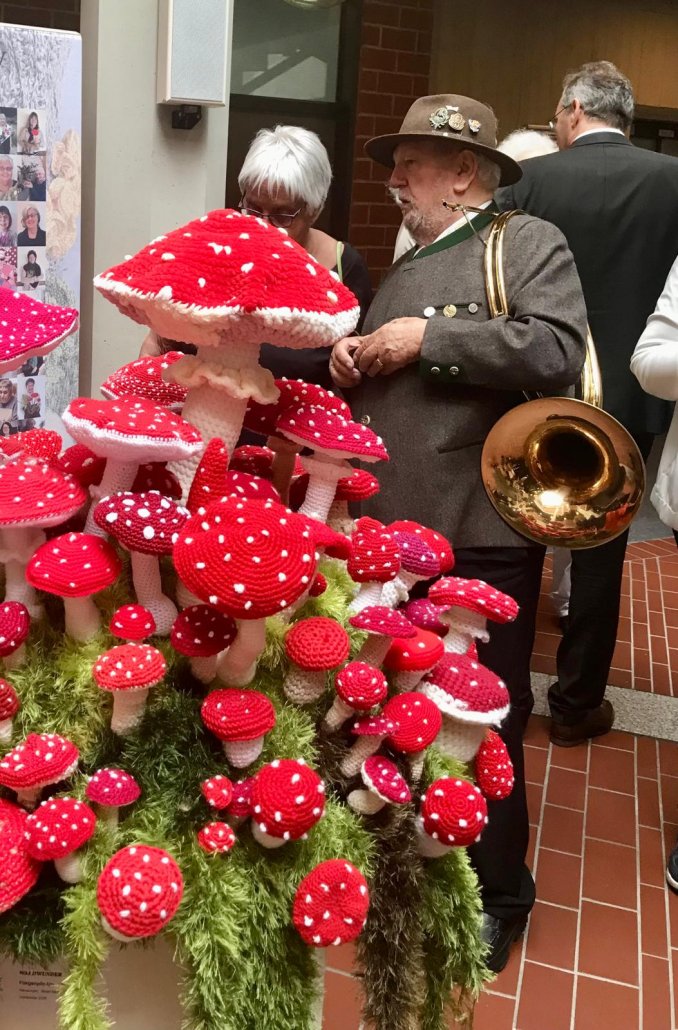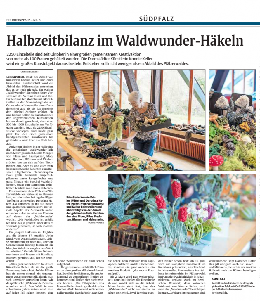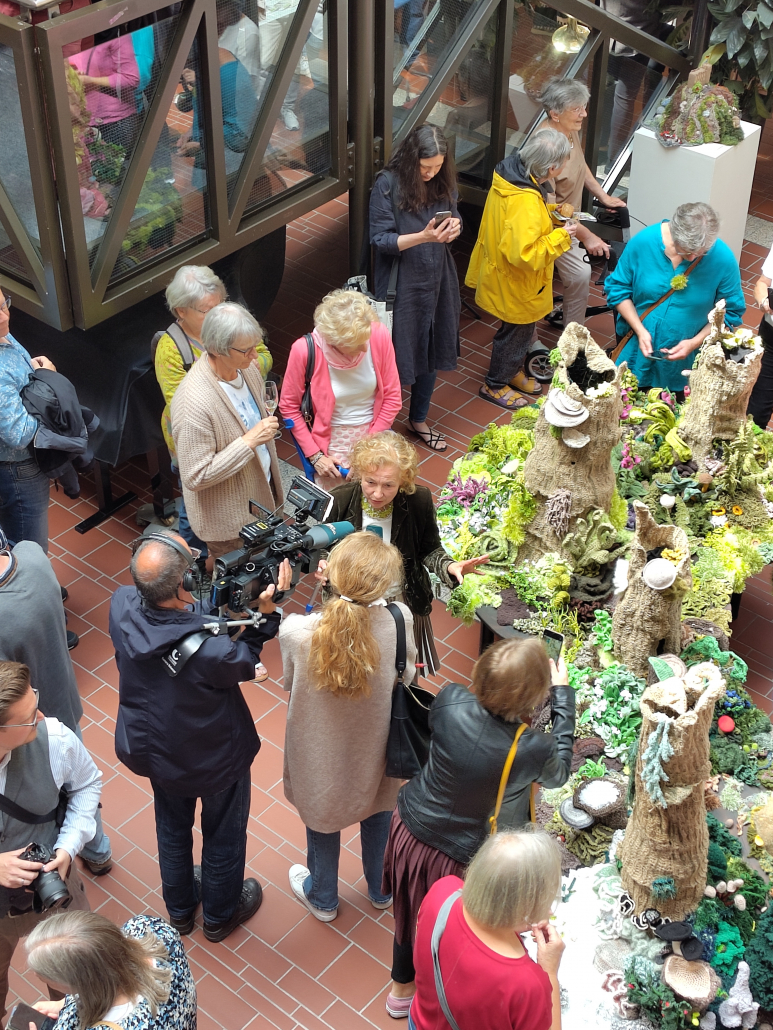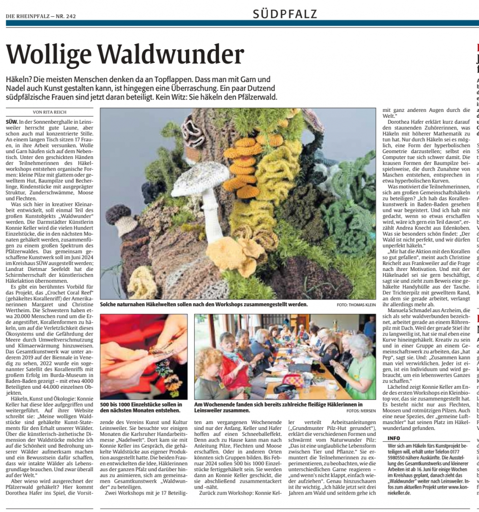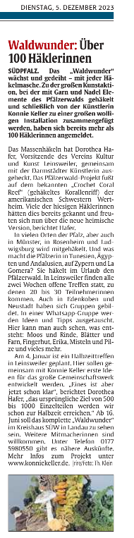 Die ersten Teilnehmerinnen trafen sich in Leinsweiler und wurden von Konnie Keller eineführt in das Häkeln organischer Objekte. Es gab großes Interesse bei Presse und Fernsehen.