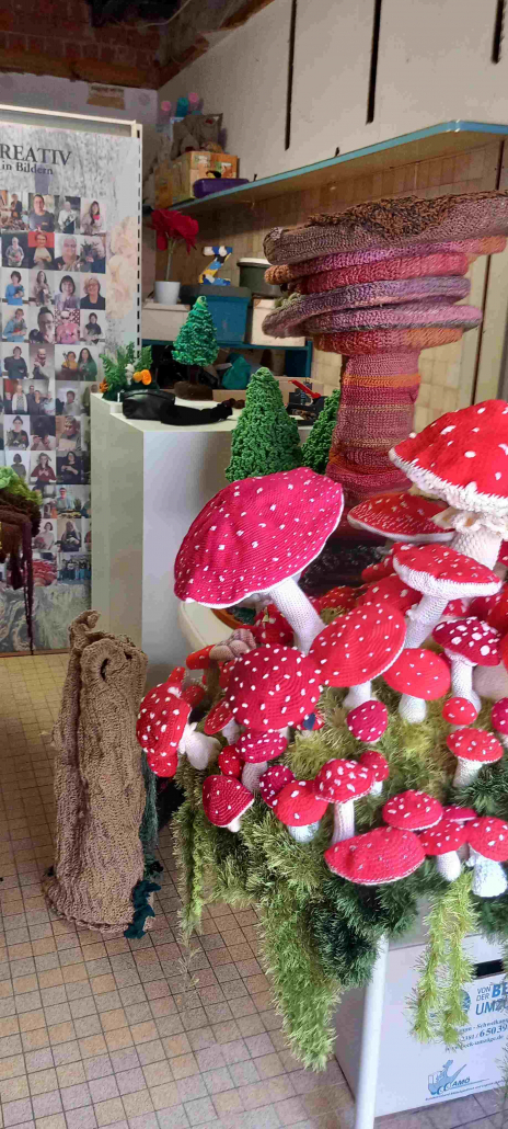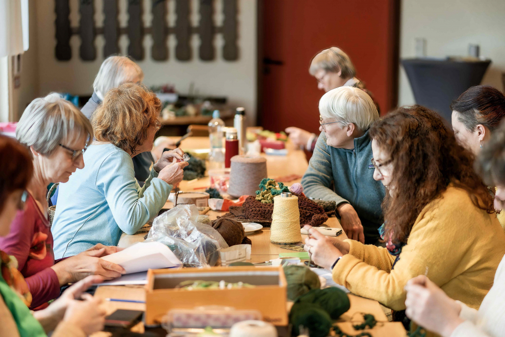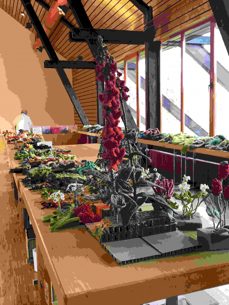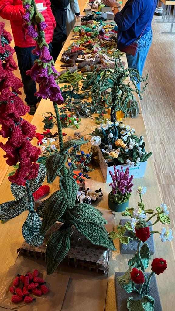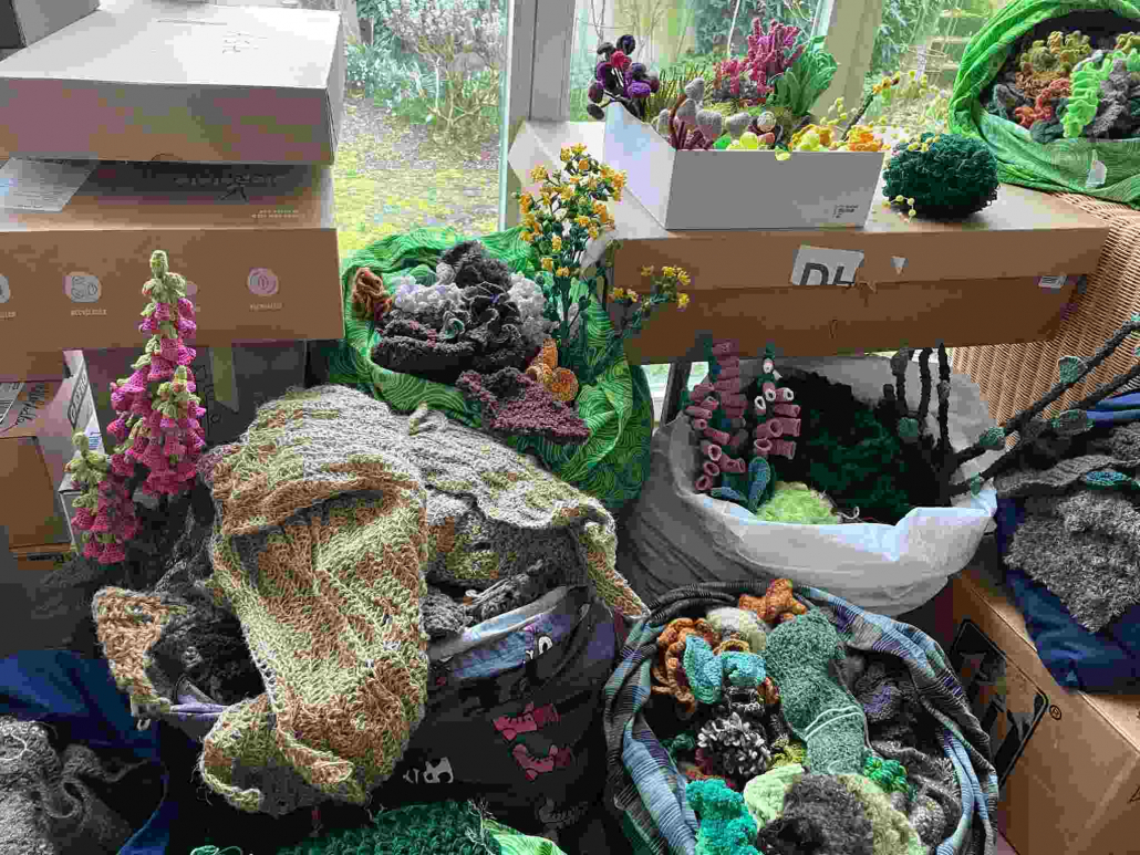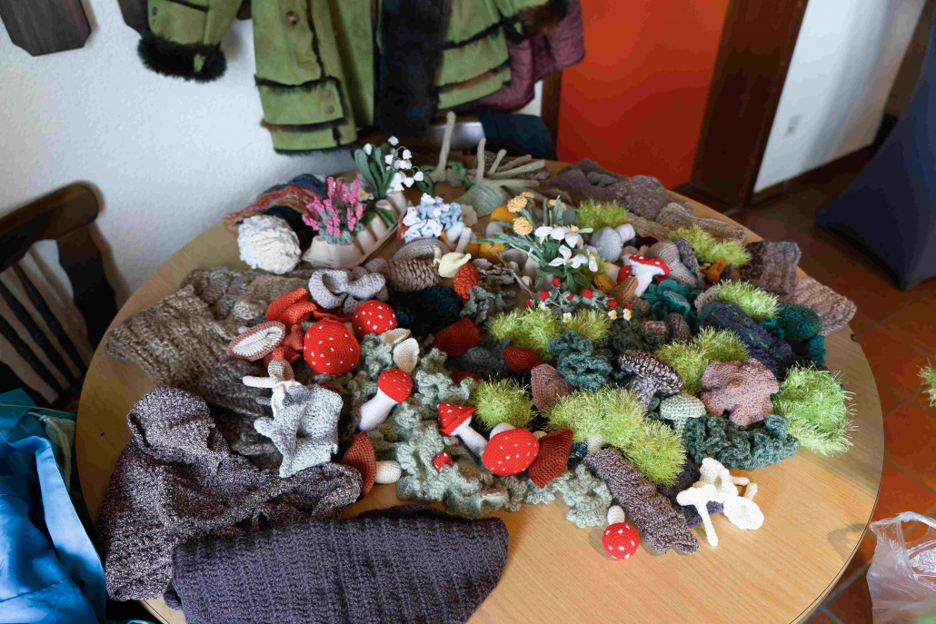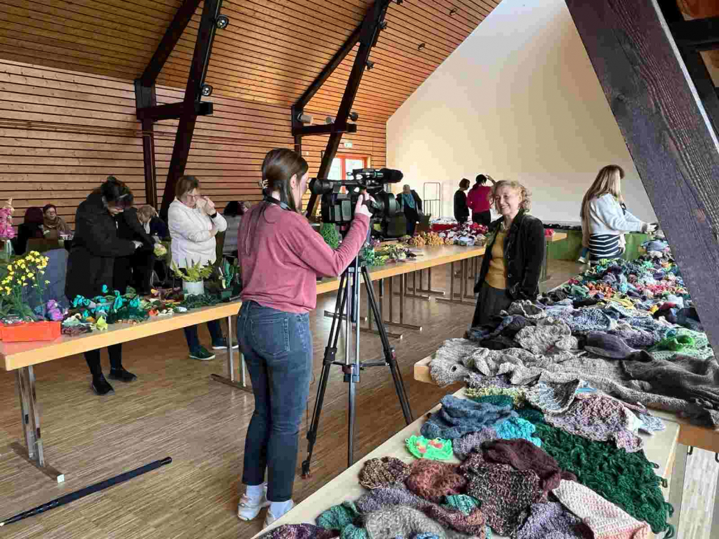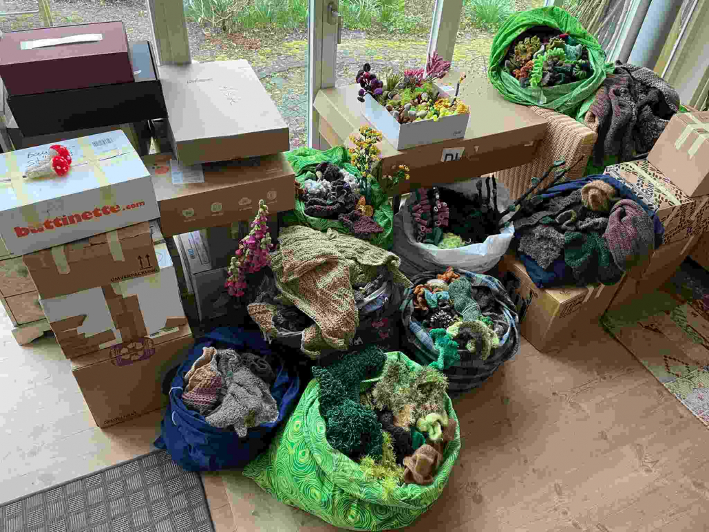 Bei einem Treffen in der Sonnenberghalle wurden alle bereits fertig gestellten Häkelobjekte zusammengetragen – mehr als 2.500 einzelne kleine Häkelkunstwerke.