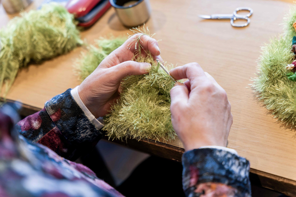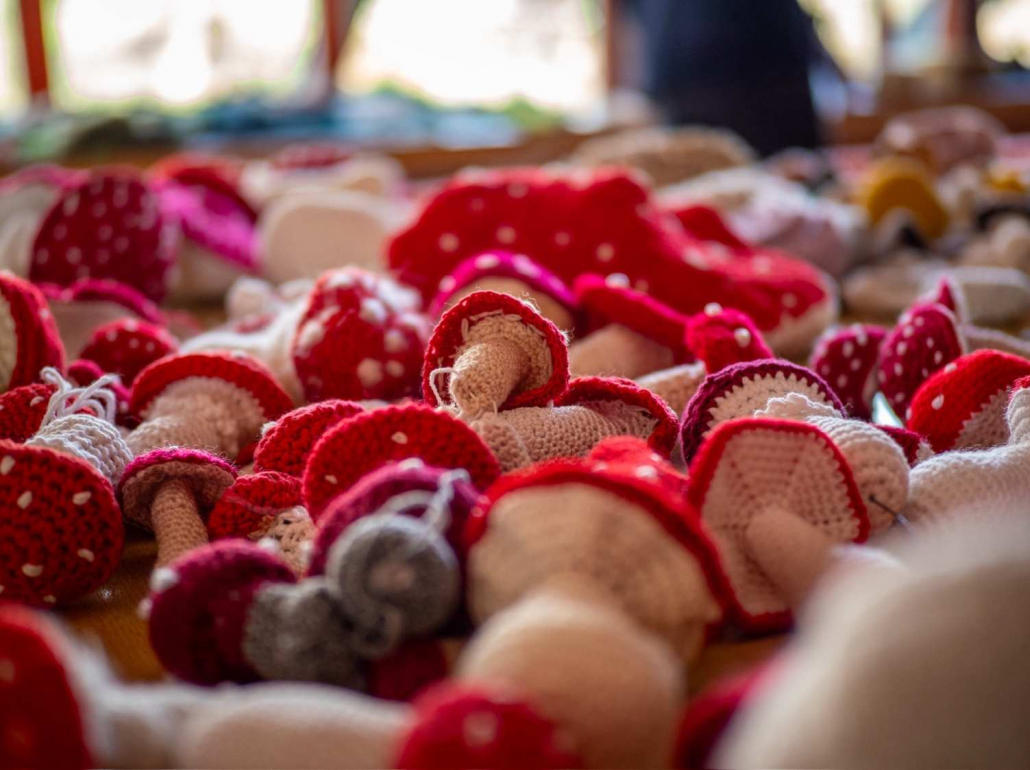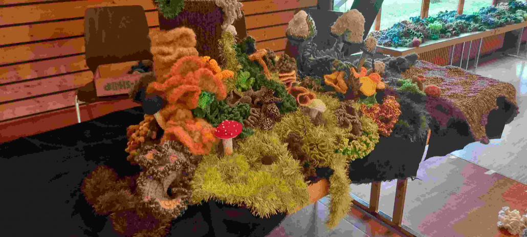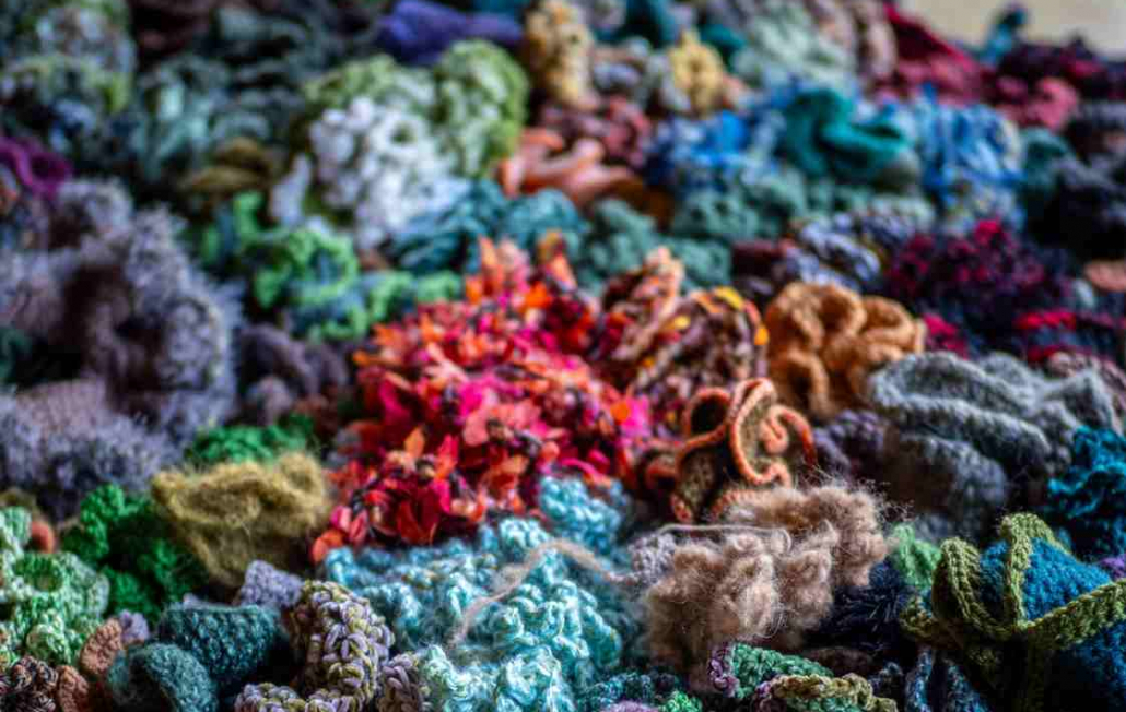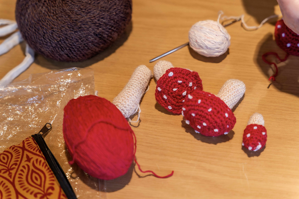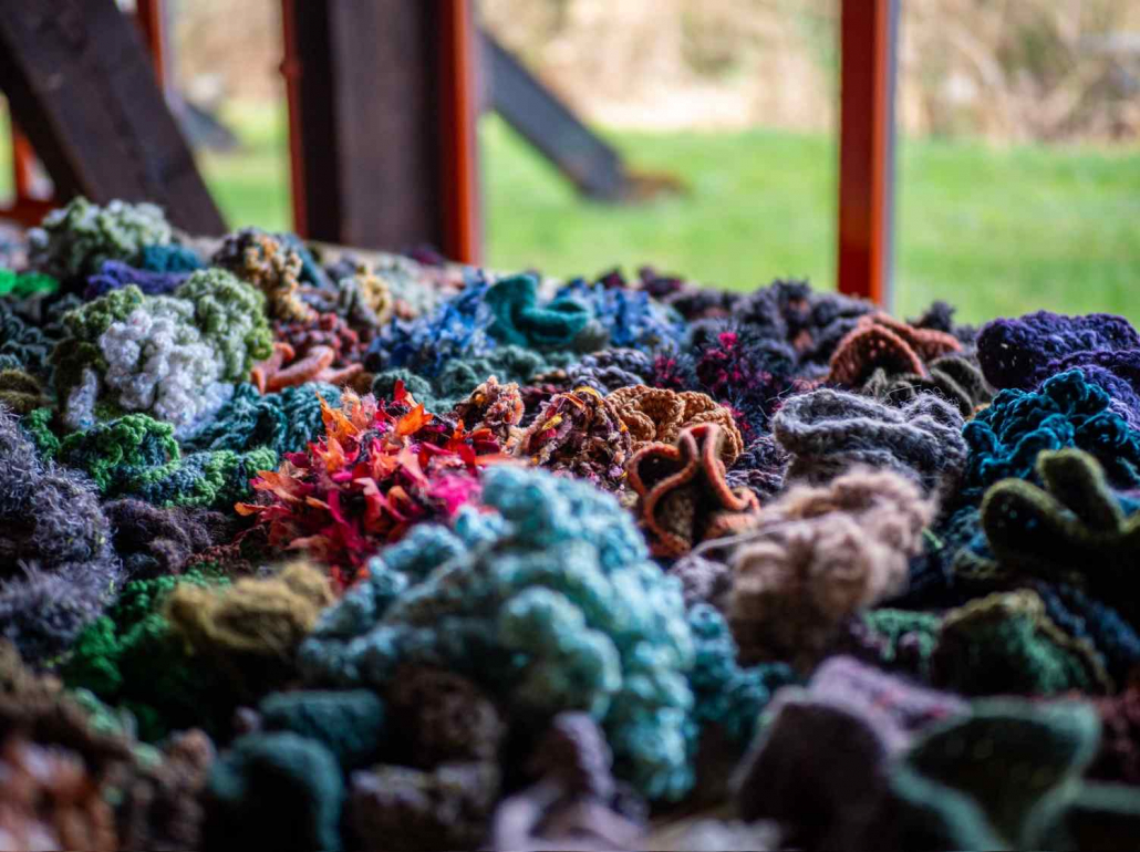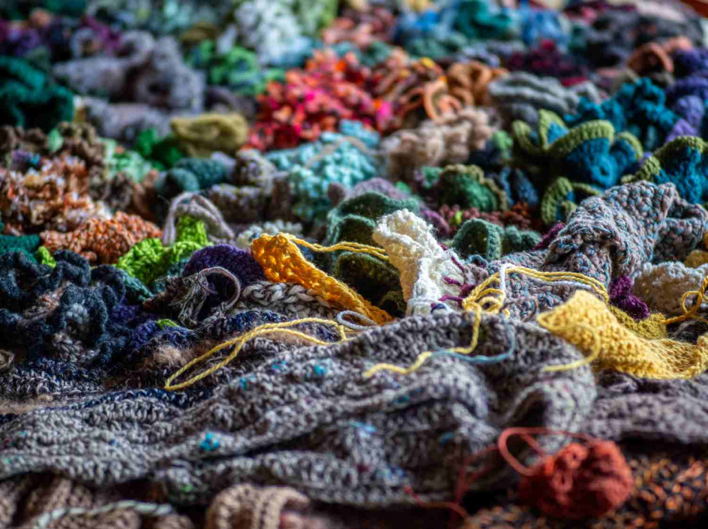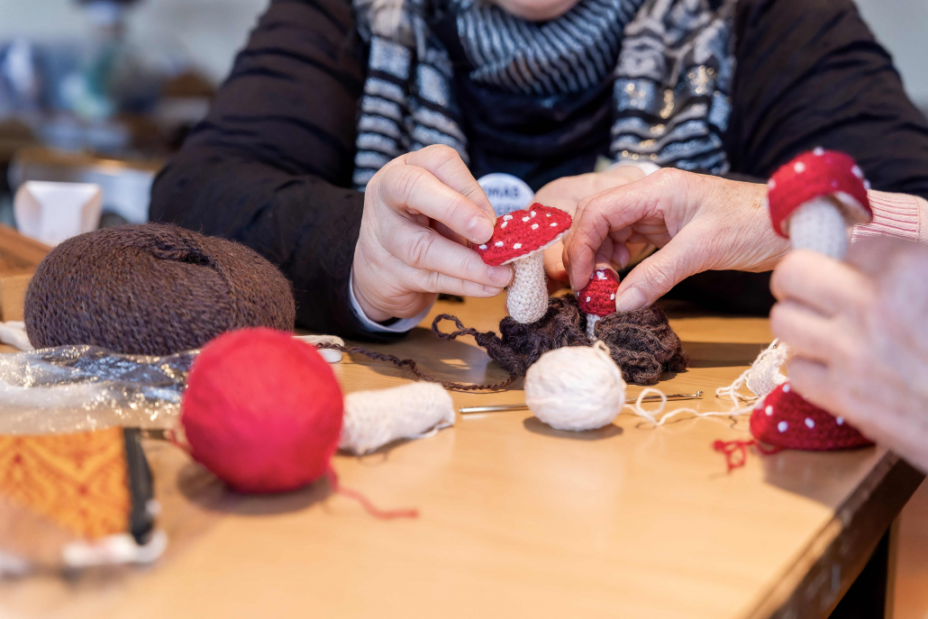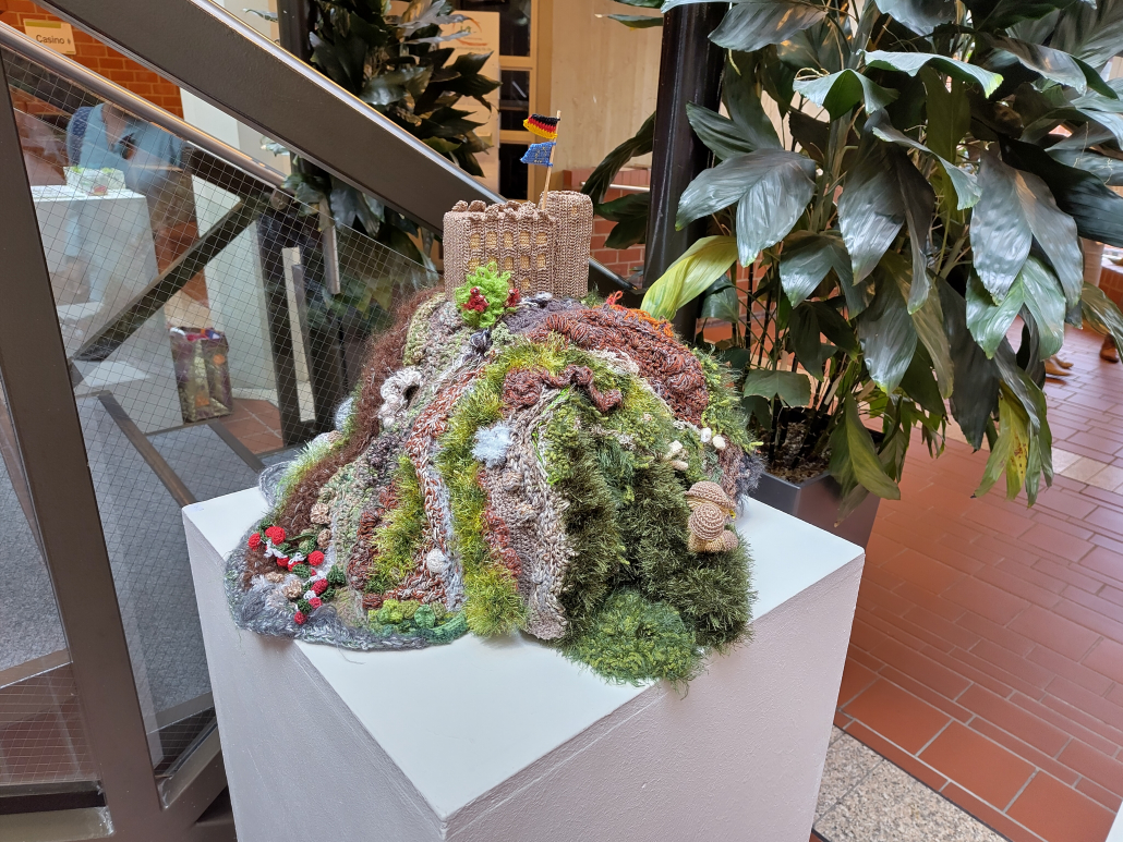 Bei einem Treffen in der Sonnenberghalle wurden alle bereits fertig gestellten Häkelobjekte zusammengetragen – mehr als 2.500 einzelne kleine Häkelkunstwerke.