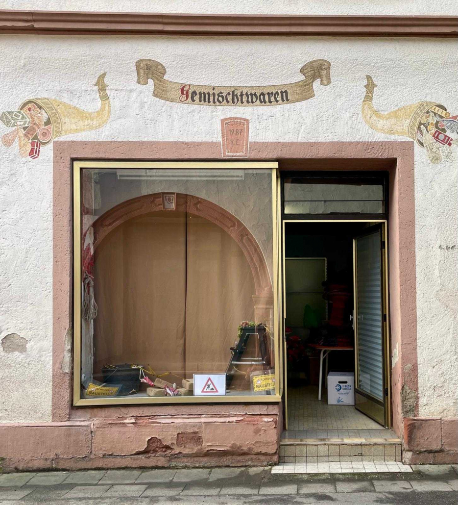 Mitten in Leinsweiler, ganz in der Nähe des Ortsmittelpunktes am Rathaus und Dorfbrunnen, gibt es ein ehemaliges Einzelhandelsgeschäft. Seit Aufgabe des Geschäftes vor einigen Jahrzehnten wurde der Laden hauptsächlich als Lagerraum für verschiedene Zwecke genutzt. Die Besitzerin bietet dem Waldwunder diese Räume jetzt Aufenthaltsraum für die Zeit zwischen den unterschiedlichen Ausstellungen.